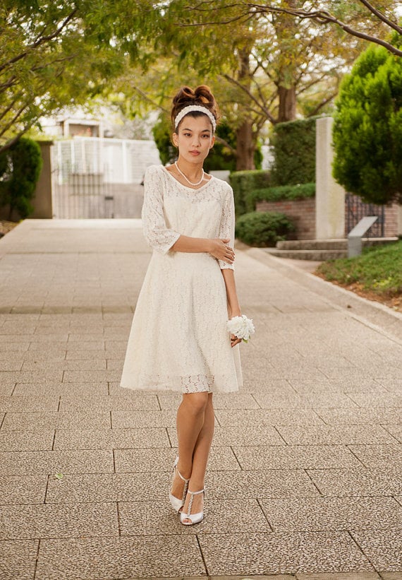 wedding dresses dress short casual length beautiful sleeves vintage bridal sweetheart knee informal tea balero coat line ivory simple backless