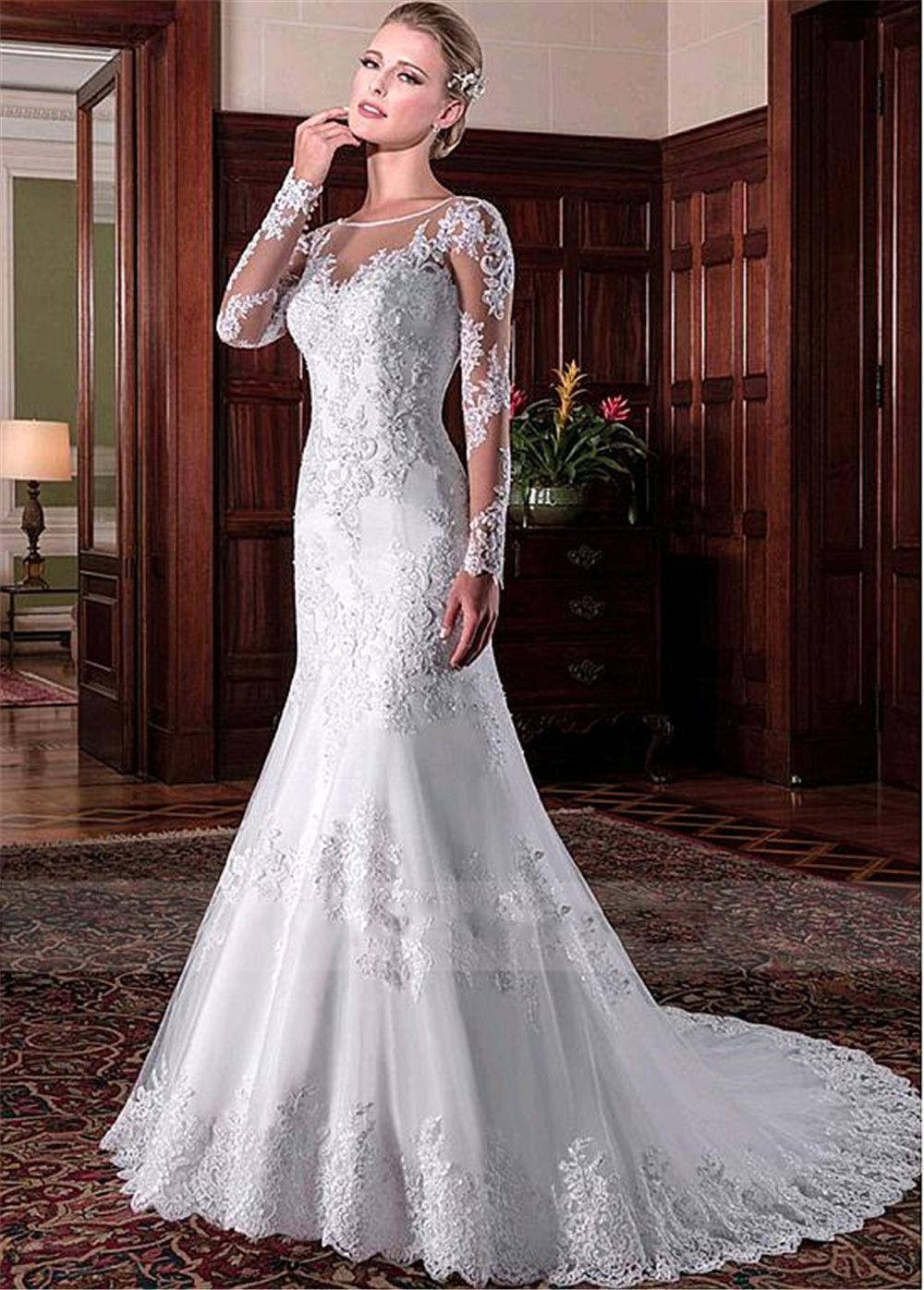 wedding dress lace long custom bridal sleeve gown made mermaid ivory elegant chiffon modest fashionable dresses gowns sleeves slim weddbook